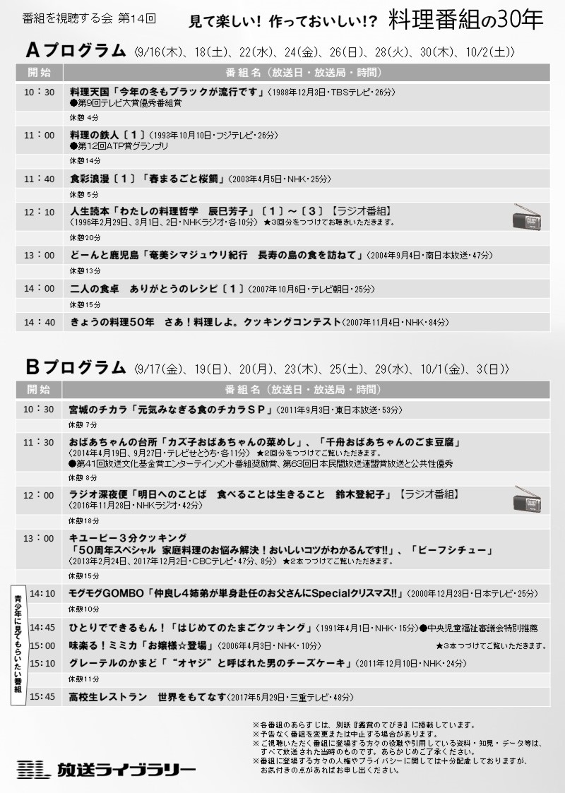 毎日の放送に欠かせない番組の1つ「料理番組」は、1925年のラジオ放送開始と共に始まり、時代に合わせて変化を続けています。今回は、過去30年にわたる料理番組の変遷をたどり、料理・食という普遍的なテーマを、作り手がどのように工夫し、視聴者に伝えてきたかを感じられる番組20本を取り上げます。放送当時のテキストなど、上映する番組の関連書籍も展示します。