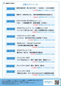 今回は、世代や経験を超えて、震災の記憶と教訓を伝えようと制作されたテレビドキュメンタリーを特集上映します。