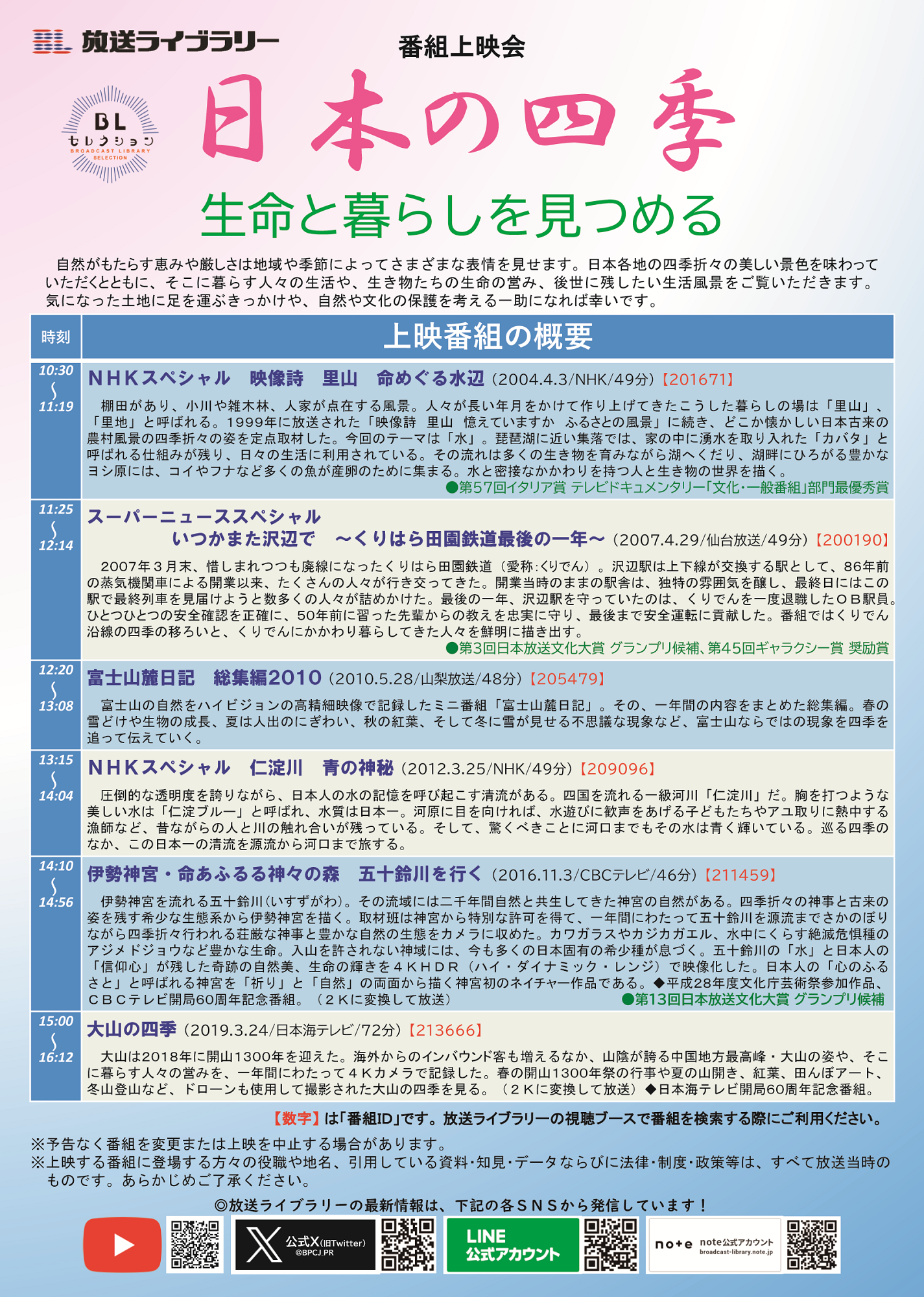 BLセレクション 番組上映会 日本の四季 生命と暮らしを見つめる